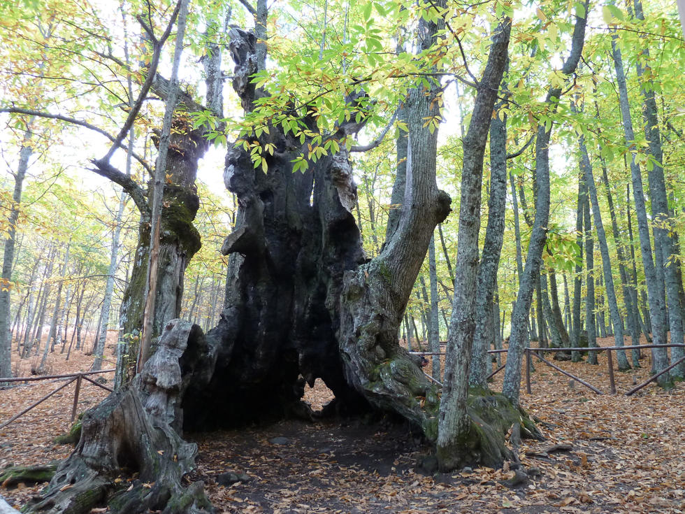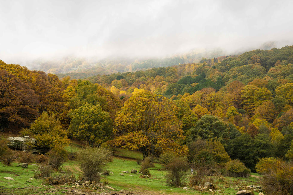 Antes de abandonar El Tiemblo es obligado pasar por su famoso castañar en busca del gigante.