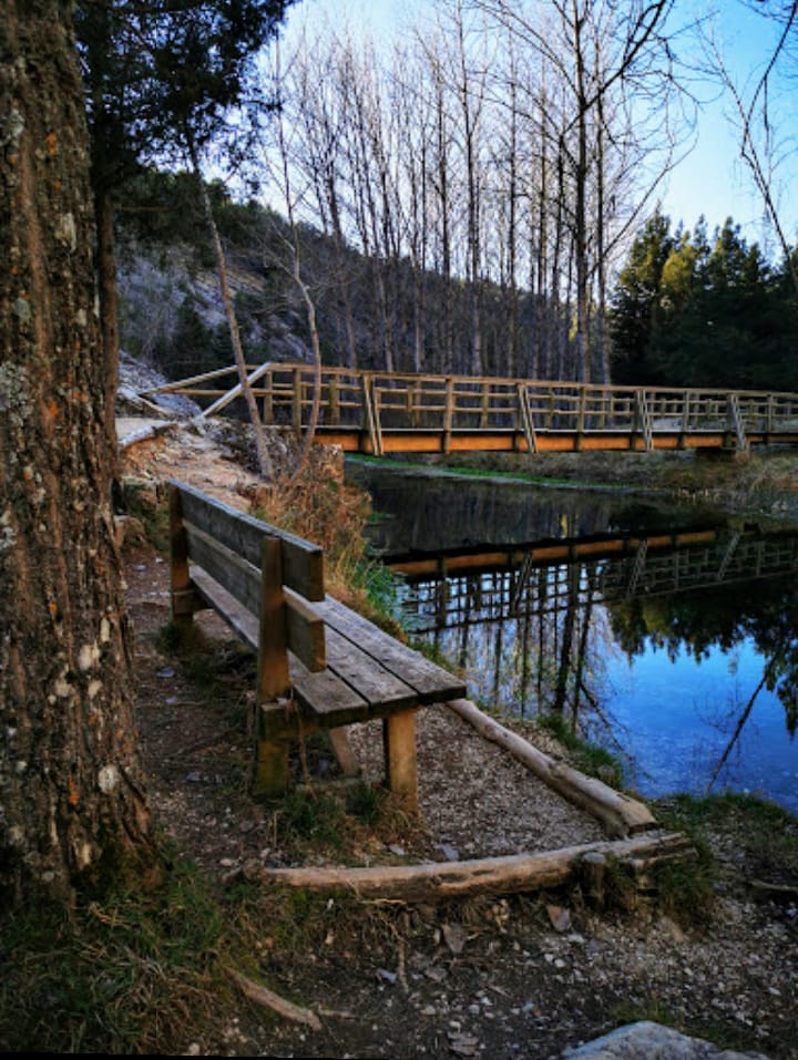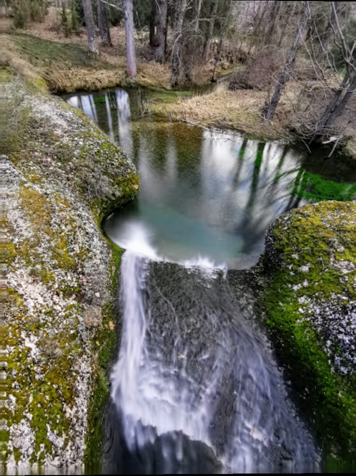 Buenos días hoy desde la Fuentona de Muriel (Soria).El lugar idílico que os muestro hoy es dónde nace el río Abion en los alrededores del pueblo de Cabrejas .Este sitio tan sorprendente, es único y precioso, tanto en su recorrido a lo largo del río ,(desde el sitio donde se dejan los coches) hasta el nacimiento , también llamado Ojo de Mar .Acuífero extraordinario con aguas transparentes en color turquesa ,nos sorprenderá en su recorrido entre Sabinas ,encinas , saltos y cañones . También cerca tenemos un sendero que nos llevará hasta una pequeña y bella Cascada.El nacimiento del río es de 30m. de diámetro y una profundidad de 9 m. en su fondo comienza una galería de más de 200 m. que dicen que nos lleva a una profundidad de 43 m. En forma de sifón, pero eso es solo para espereólogos y buzos , (que podemos ver en documentales de televisión).Es una maravilla ,no solamente el sitio si no todo el recorrido y su entorno, además del Sabinar de Calatañazor a pocos km. de allí . Esta considerado Monumento Natural desde el año 1998 y seguramente cuando lo visites ,creeréis estar en otro sitio (remanso de Paz), de cualquier país como Suiza o Australia.España tiene rincones cómo está Fontana maravillosa dentro de la provincia de Soria , que sin duda es Paraíso Natural ,como dice su eslogan.España sin ir más lejos a pocos km. de Madrid.
