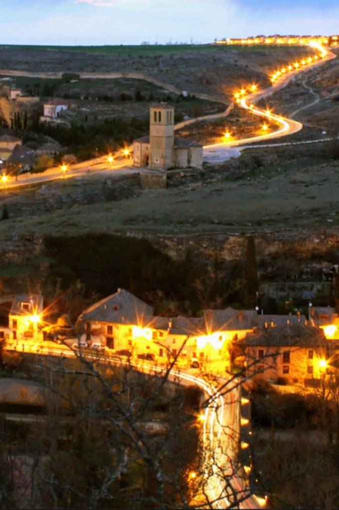Partimos de Segovia bajando de la Catedral por la calle Marqués de Arco , seguimos bajando por Velarde y enlazamos con el Paseo San Juan de la Cruz que nos llevará a la Puerta de Santiago por dónde cruzaremos la Muralla y abandonamos la ciudad caminando por la Vega que conforta el río Eresma , a nuestra izquierda el Alcázar , cruzamos el río Eresma y pasamos por la puerta del Monasterio del Parral (Monasterio de clausura de la Orden de San Jerónimo).