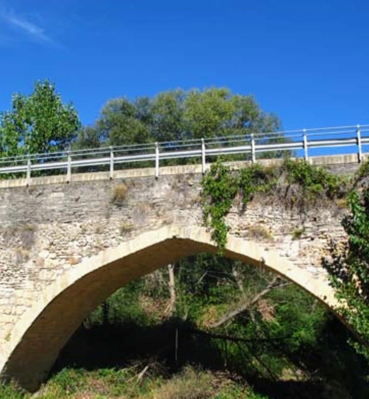 El Puente Chico , sobre el río Voltoya , de época medieval , con su vértice característico, parece de un solo ojo , aunque tuvieron que construir otro arco para prevenir las crecidas del río.