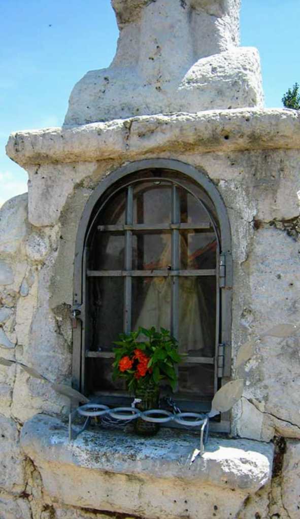 Muy cerca de la ermita en una tapia , se encuentra una gran piedra en forma triangular que tiene una gran concha Jacobea como principal motivo decorativo.
