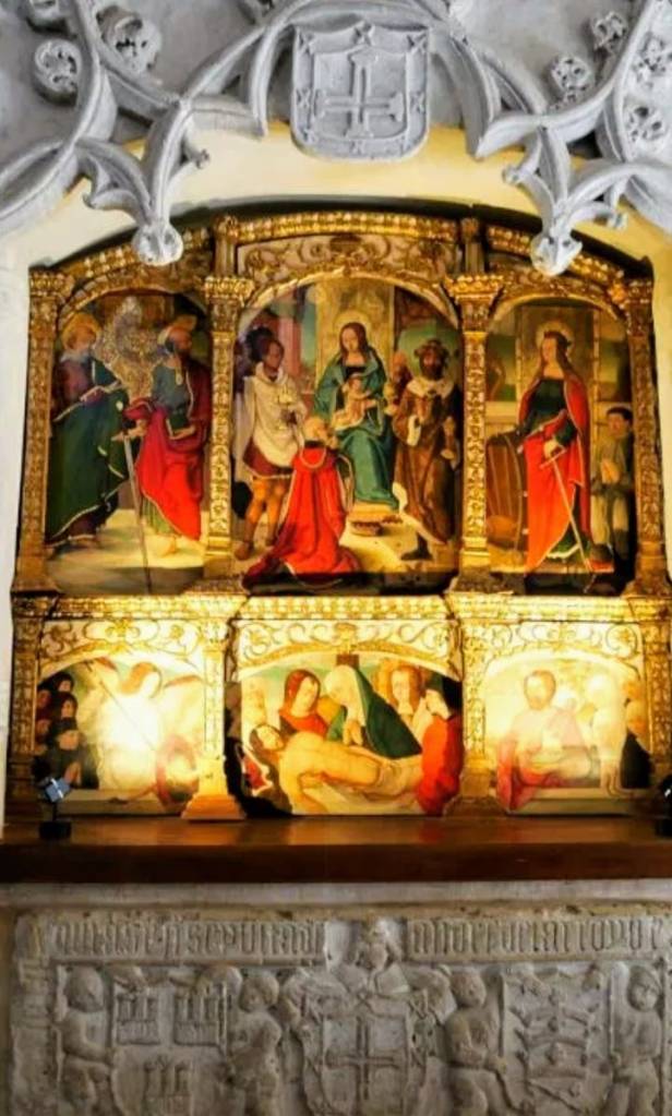Tras la restauración podemos disfrutar toda la riqueza cromática que ofrece este sitio donde están las sepulturas de la familia Noble de los Benavente .