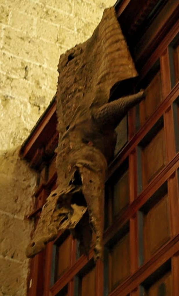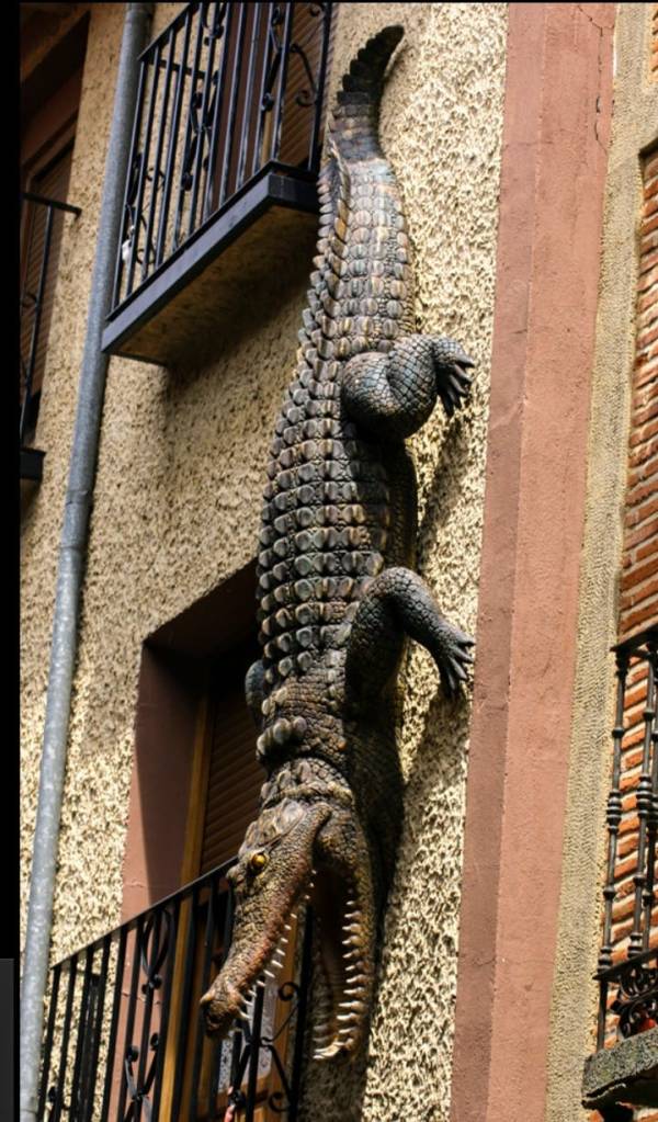 También en la calle Lázaro Alonso (La Rua) podemos ver la escultura de un impresionante cocodrilo bajando por la pared del edificio .