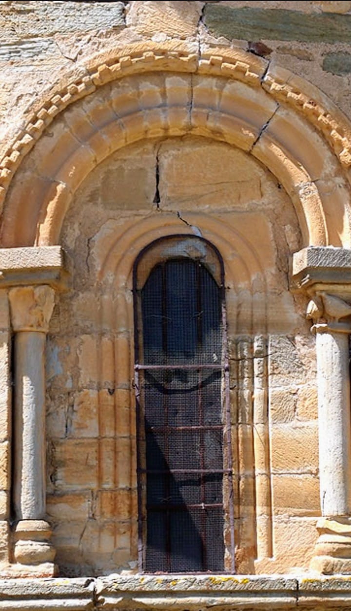 Muy particular sus tres ventanales tipo Portada , decorados con el llamado «Taqueado Jaqués» , (tipo de ornamentación arquitectónica ajedrezada empleada mucho en el siglo XI) , principalmente.