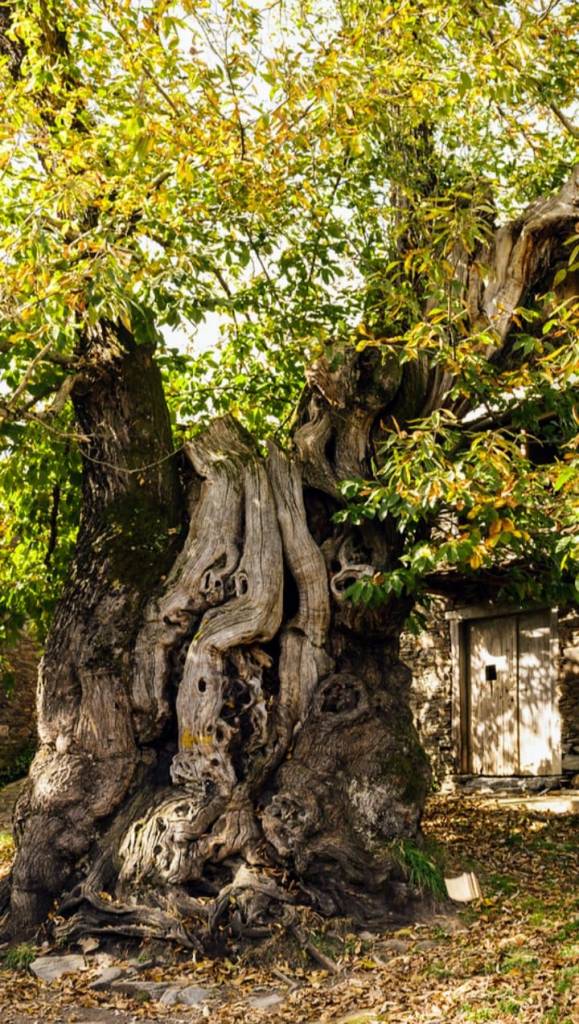 Continuando el mismo camino llegamos a la aldea de «Ramil» llamando la atención el «Castaño Centenario» que asoma pegado al camino .