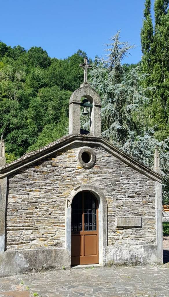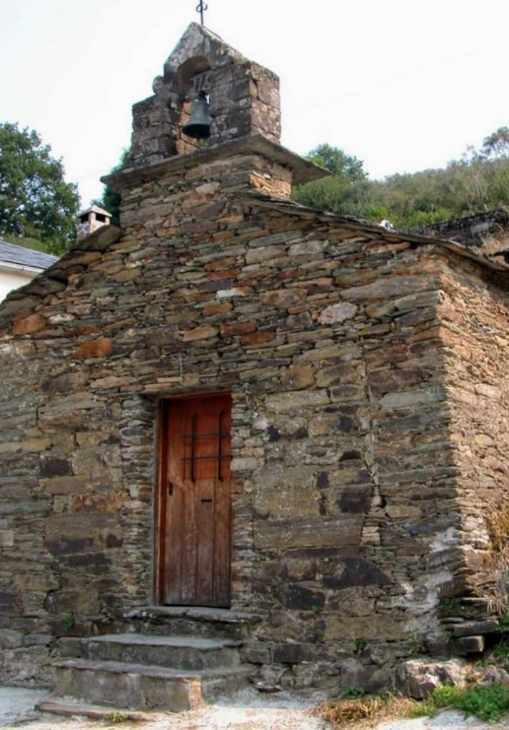 Veremos una Capilla advocada a «Santo Domingo» siglo XVIII recientemente reformada en lajas de pizarra con una sencilla y bonita espadaña con un arco de medio punto dónde se alberga una campana rematada por una Cruz .