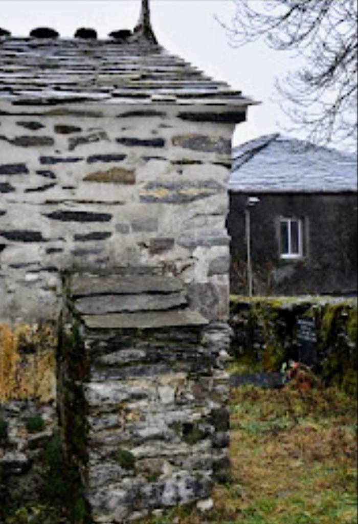 Está pequeña capilla tiene su construcción realizada en lajas de pizarra .