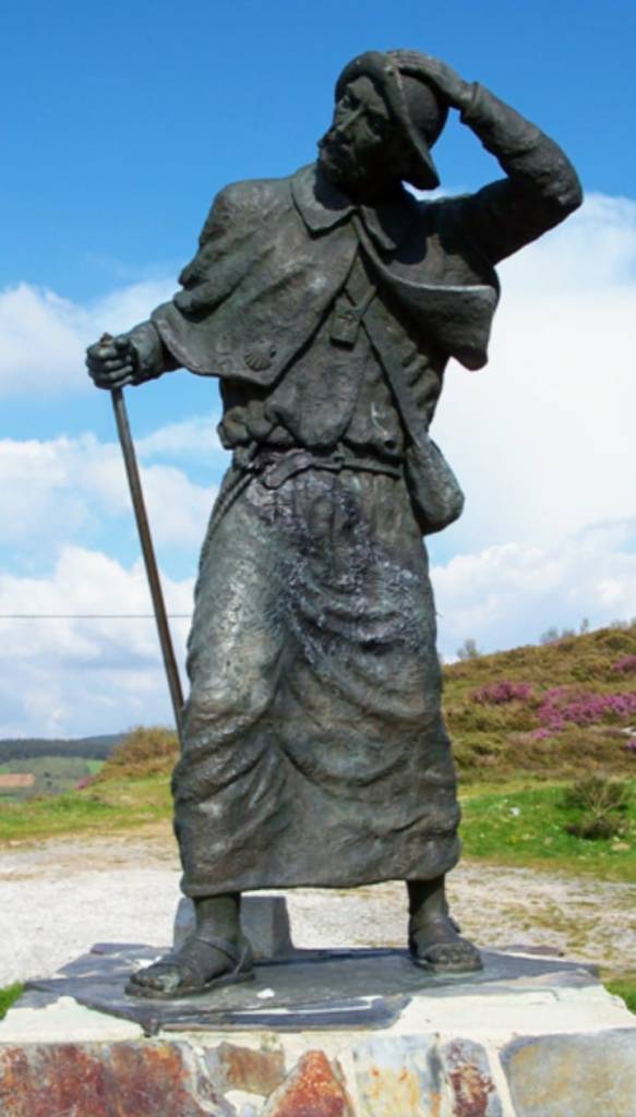 Desde aquí y tras cruzar la carretera comarcal LU-633 cogeremos un sendero indicativo a la izquierda y empezamos a ascender sobre Os Ancares en terreno duro de subidas y bajadas rodeados de abedules acompañándonos hasta el «Alto de San Roque» 1270 m. de altitud , coronado por una espectacular estatua de bronce dedicada al peregrino , con sus vestimentas al viento en actitud desafiante , obra del escultor pontevedrés José María Acuña realizada en el año 1993 .