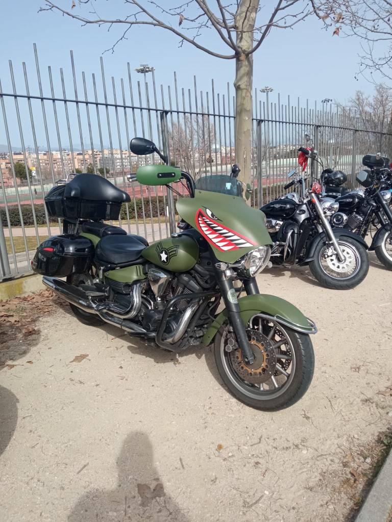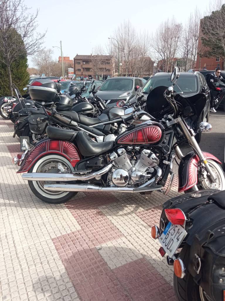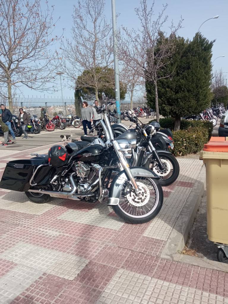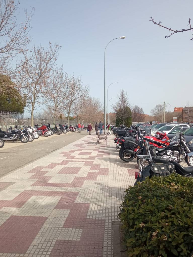 En definitiva, allí íbamos camino de Alcobendas, a su sede para la fiesta. Aunque no supieras el lugar donde está, era muy fácil llegar. Podíamos decir que sólo había que seguir el instinto, o más bien, a algún grupo de los que acudían al evento. Es impresionante lo bien organizado que estos grupos conducen sus majestuosas monturas por la carretera y la ciudad. Como todo, hasta estos detalles están definidos en estos grupos. El lugar del evento se sabía de lejos. Una hilera de más de 100 motos, perfectamente aparcadas marcaban la ubicación. Y es que, hay que decir que la organización fue de 10. Antonio y su equipo ya habían hablado con las autoridades locales y conseguido los permisos para que todas las monturas pudieran ser vistas y disfrutadas por todos los que se acercaban sin molestar al tráfico. La policía municipal, Protección Civil… hicieron el despliegue necesario y no faltó la visita del alcalde de Alcobendas D. Aitor Retolaza. Lo cierto que fue una autentica fiesta para todos los ciudadanos y vecinos que disfrutaron del espíritu de la “cultura Biker”.