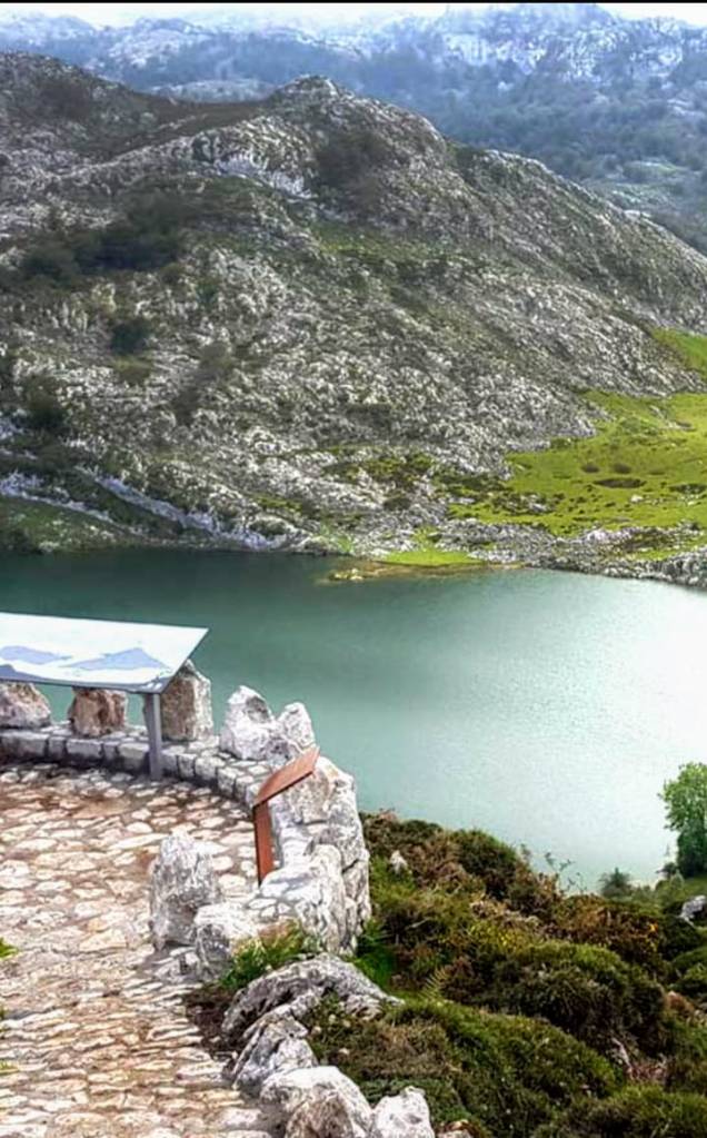 Tiene una fácil subida encontrándose casi en la cima del pico Sohornìn , merecerá mucho la pena contemplar desde el lugar una vistas inigualables del Lago Enol , con su Vega y una panorámica de los Picos de Europa , todos ellos detallados en el panel informativo .